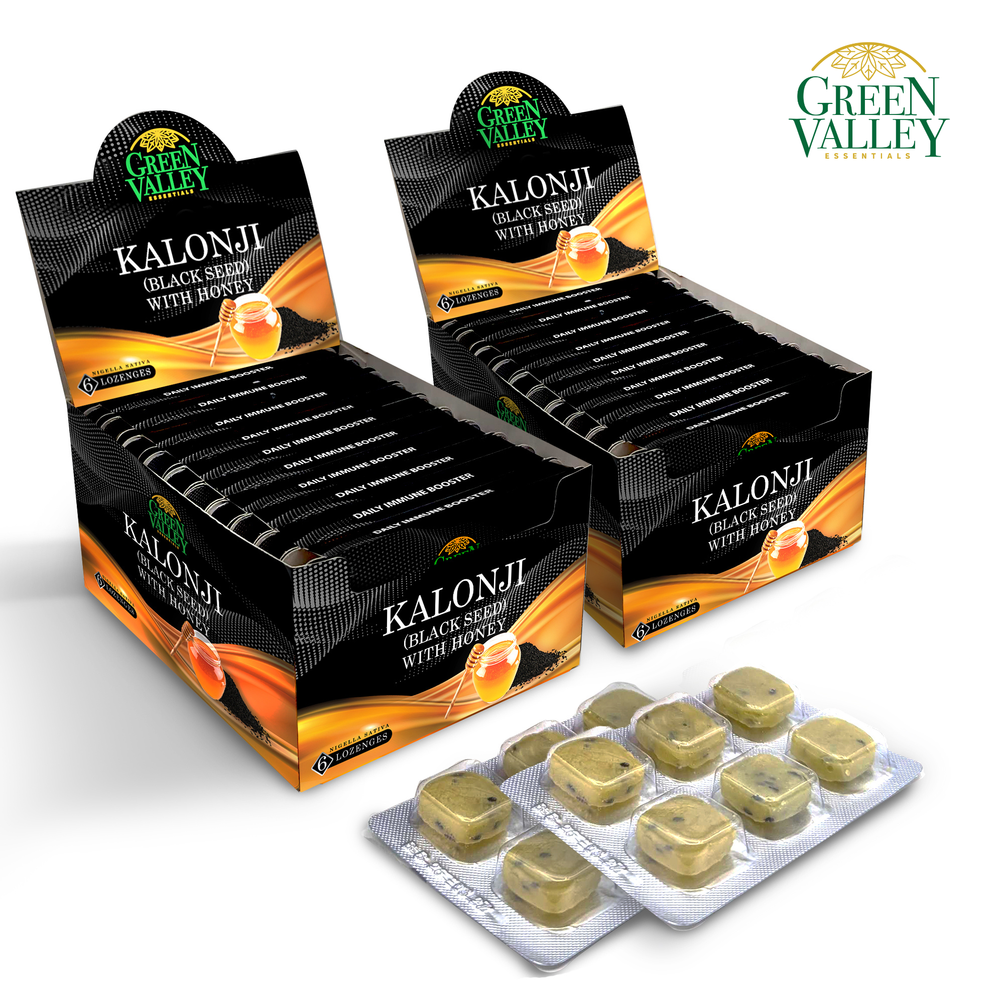 \nGreen Valley Black Seed Lozenge contains Black Seed & Honey, both known for their powerful natural properties that help to boost your immune system. The combination of these two natural ingredients reduces duration and severity of cough, soothes sore throat and provides quick relief in throat irritation associated with common cold.
